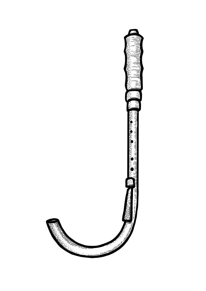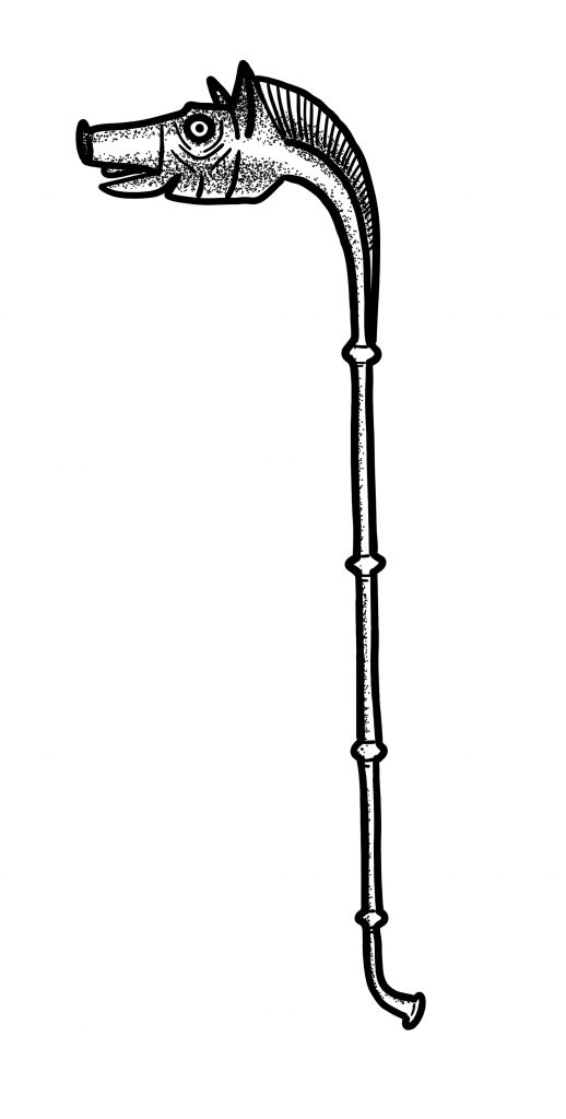 Lure – Franz Schüssele (ohne Ort und Datum) spielt ein Exemplar mit Schellen – aber eher schön als Angst einflößend.