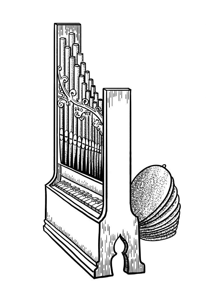 Sweelingk – Toccata und Fuge in A. Gwendolyn Toth. Eine Aufnahme mit gleich vier vergessenen Tasteninstrumenten, aber ohne Portativ: Muselar, Regal (ein anderer Vorgänger der Orgel), Virginal (Vorgänger des Cembalos) und Lautenwerk. Leider nur auf Instagram